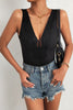 Perfee Spliced Lace Deep V Sleeveless Bodysuit