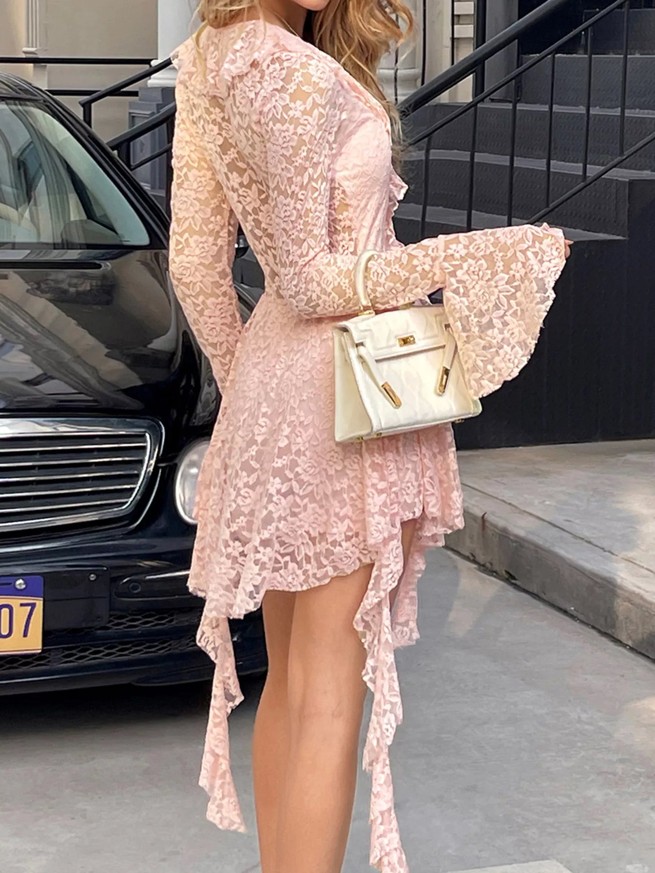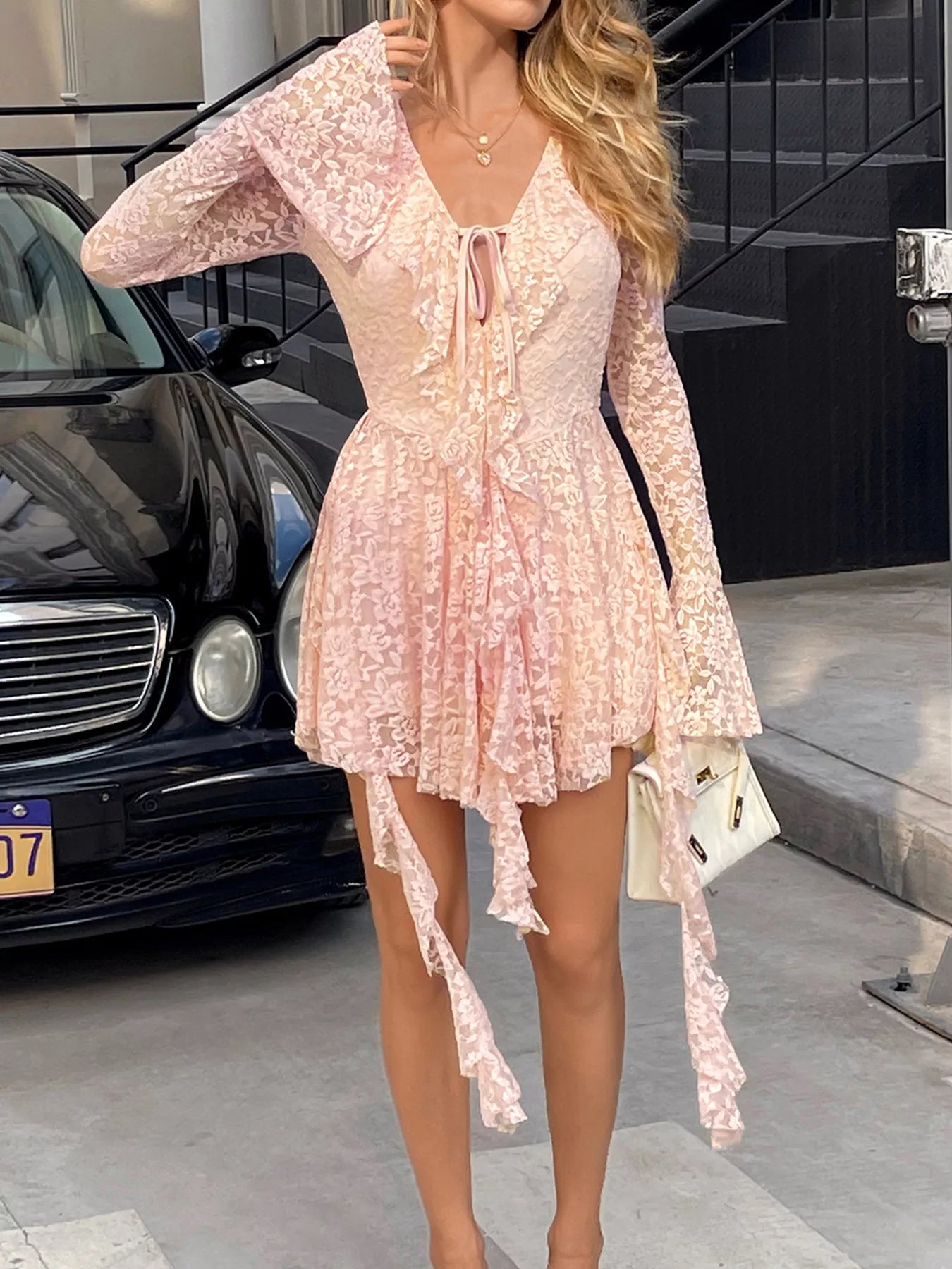 - Features:Lace,Tied,Ruffled,Slit
