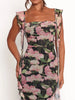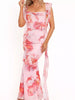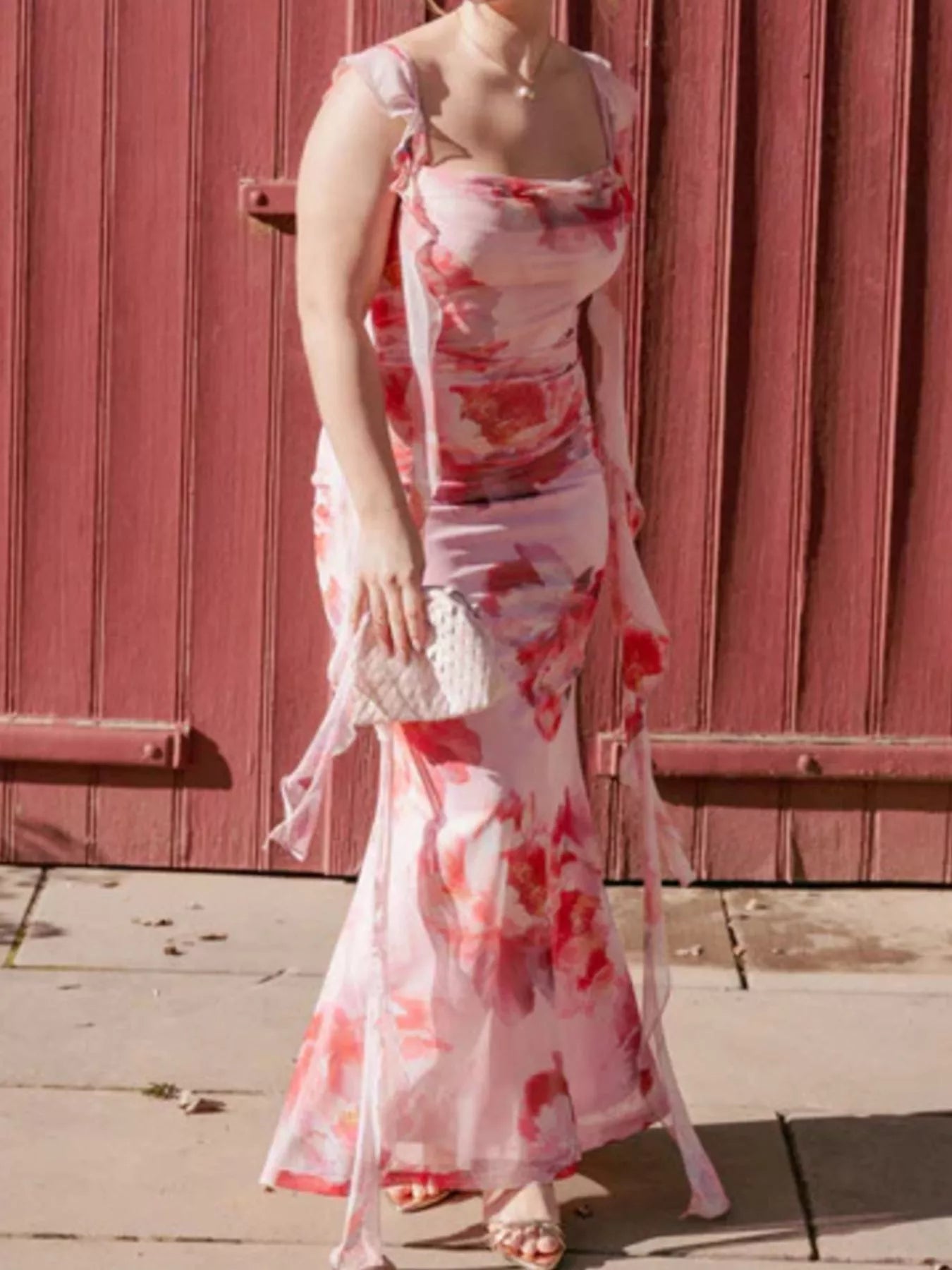 Floral Print Ruffle Trim Bodycon Maxi Dress