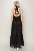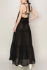 This cotton voile dress features a tie-back halter neck and a loose-fit tiered maxi silhouette, making it ideal for warm days or tropical getaways. The open-back design adds a carefree vibe to the overall look.