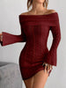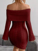 Off-Shoulder Cable Knit Bodycon Sweater Dress