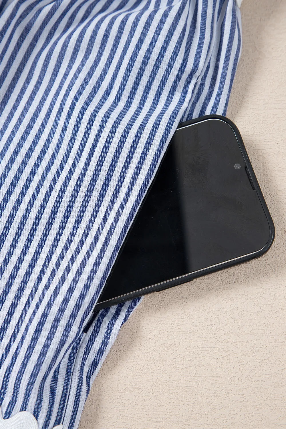 Stripe Sleeveless Notched Ric Rac Mini Dress
