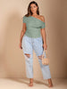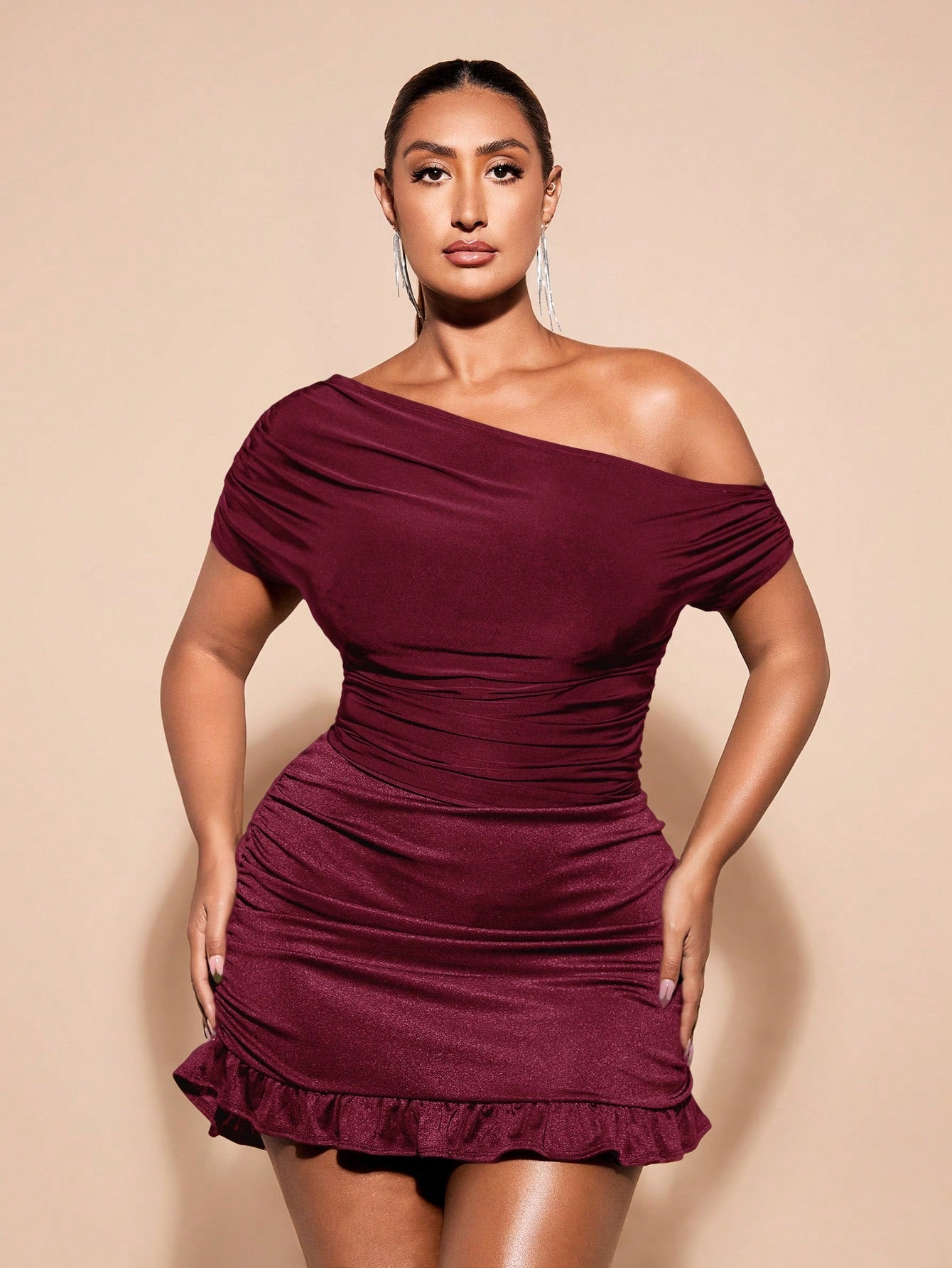Details : Asymmetrical, Ruched, Ruffle Hem