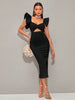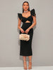 BAE Torção Frontal Acabamento De Babados Cut Out Dividir De Volta Vestido