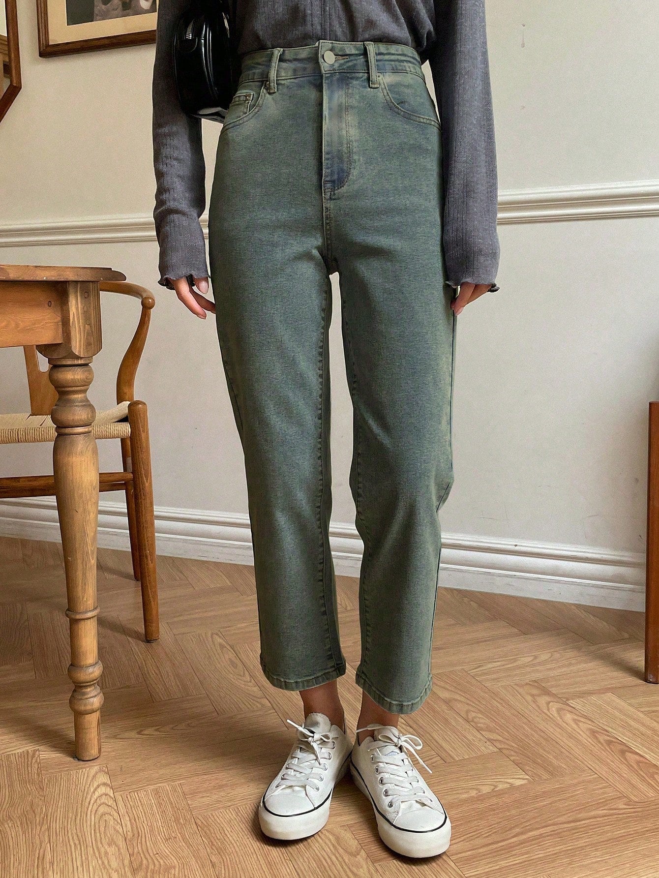 DAZY Women's Straight-Leg Casual Cropped Jeans With Pockets
