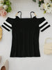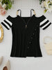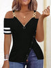 EMERY ROSE Women's Cold Shoulder T-Shirt With Metal Chain Decoration