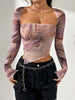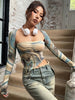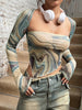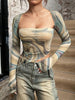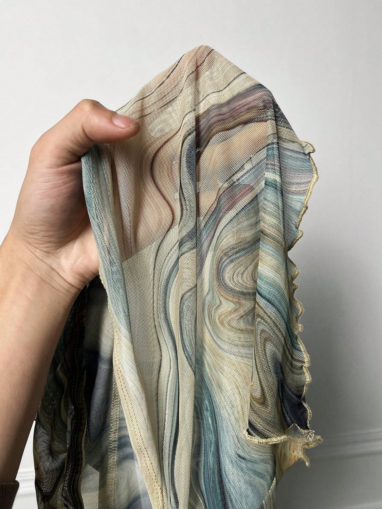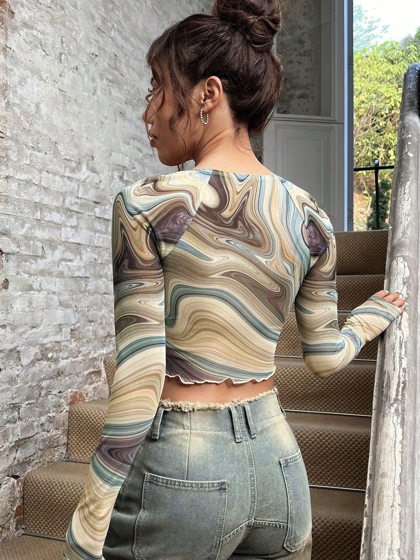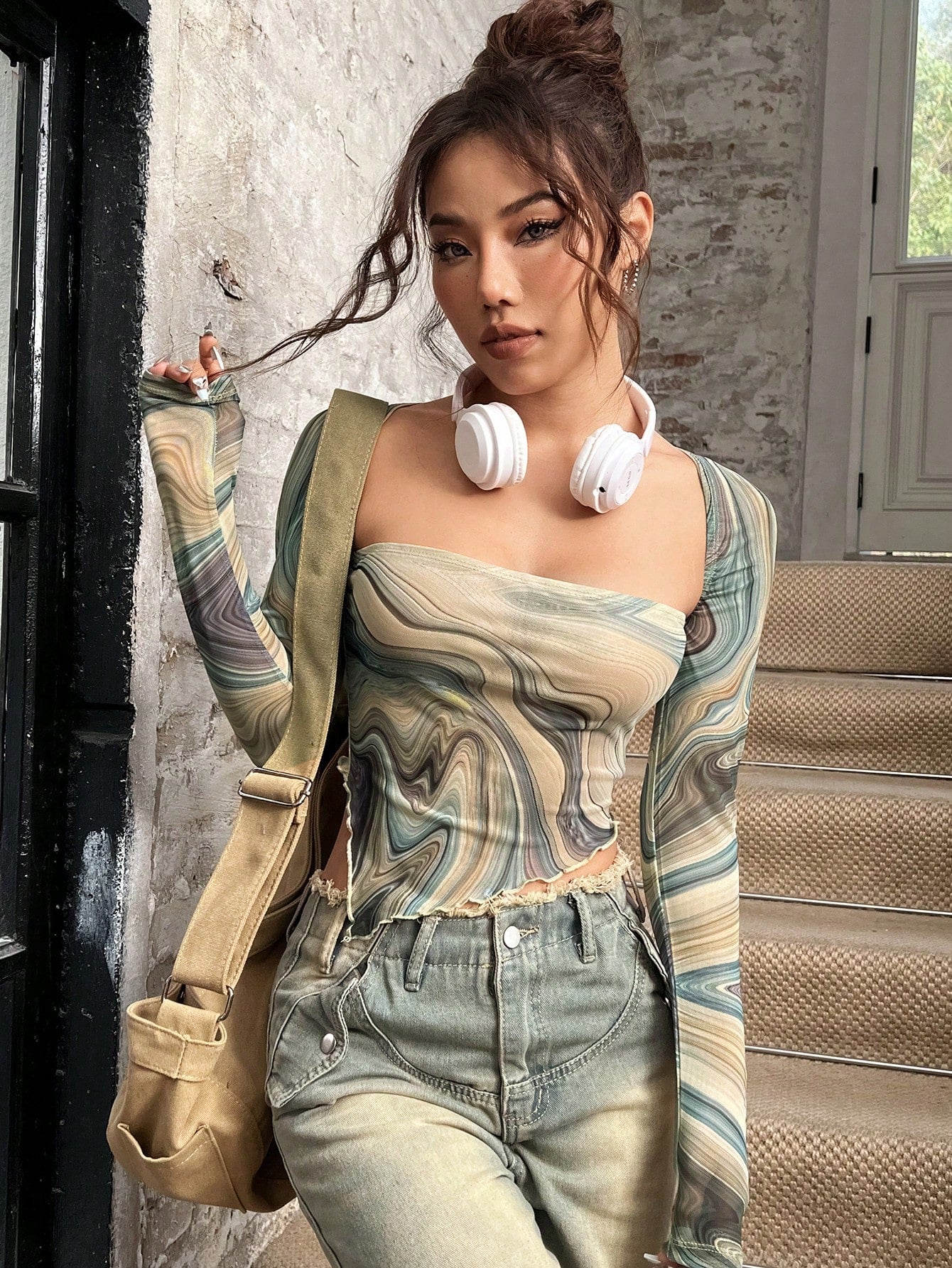 EZwear Marble Printed Square Neck Asymmetrical Hem Top