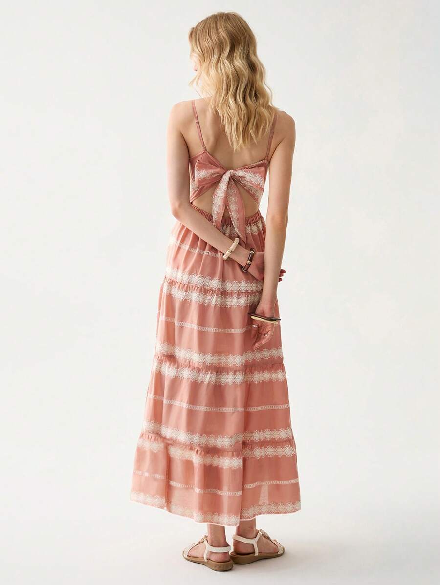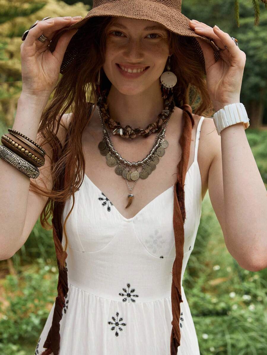 Florisole Bohemian Style Vacation Embroidered Multi-Layer Patchwork Dress For Women