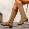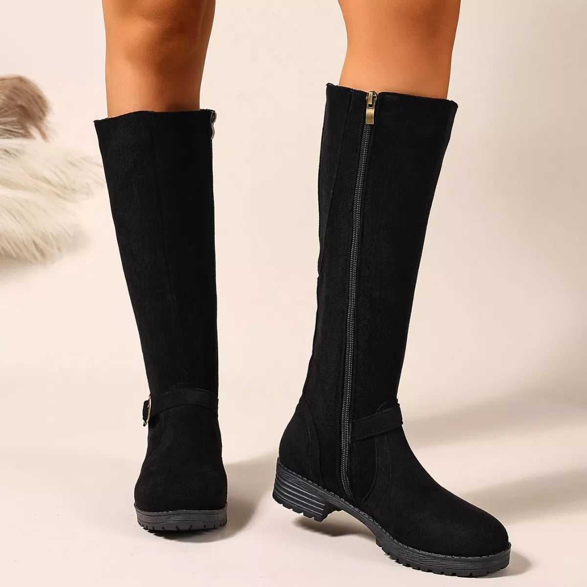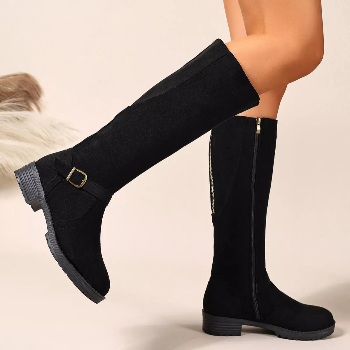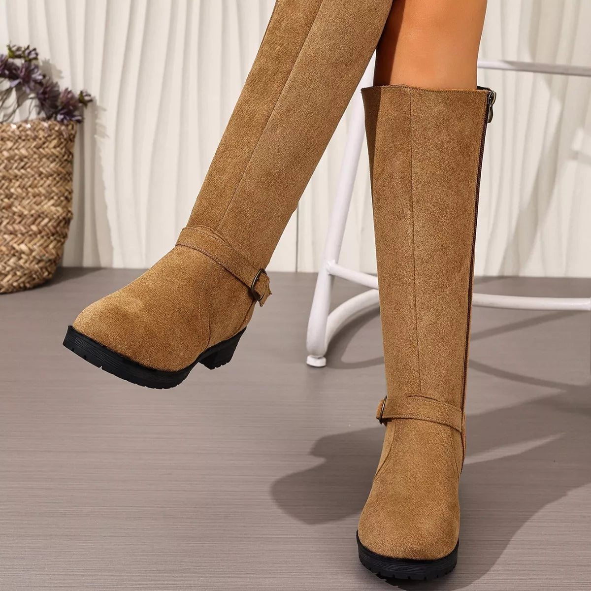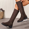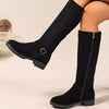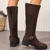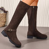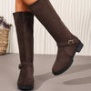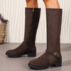Knee-High Suede Buckle Accent Boots