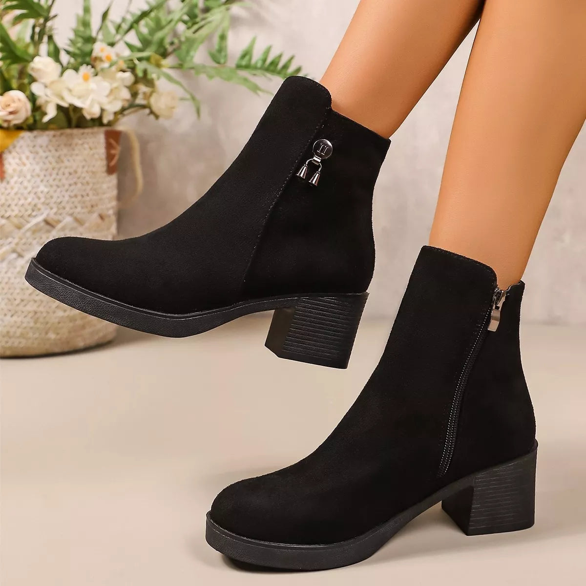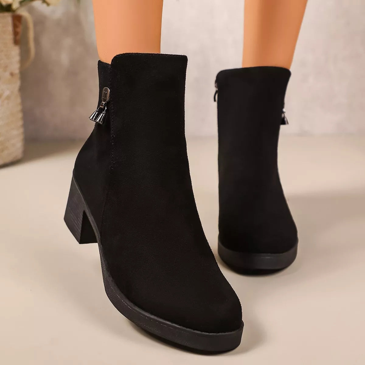 Point Toe Block Heels Boots