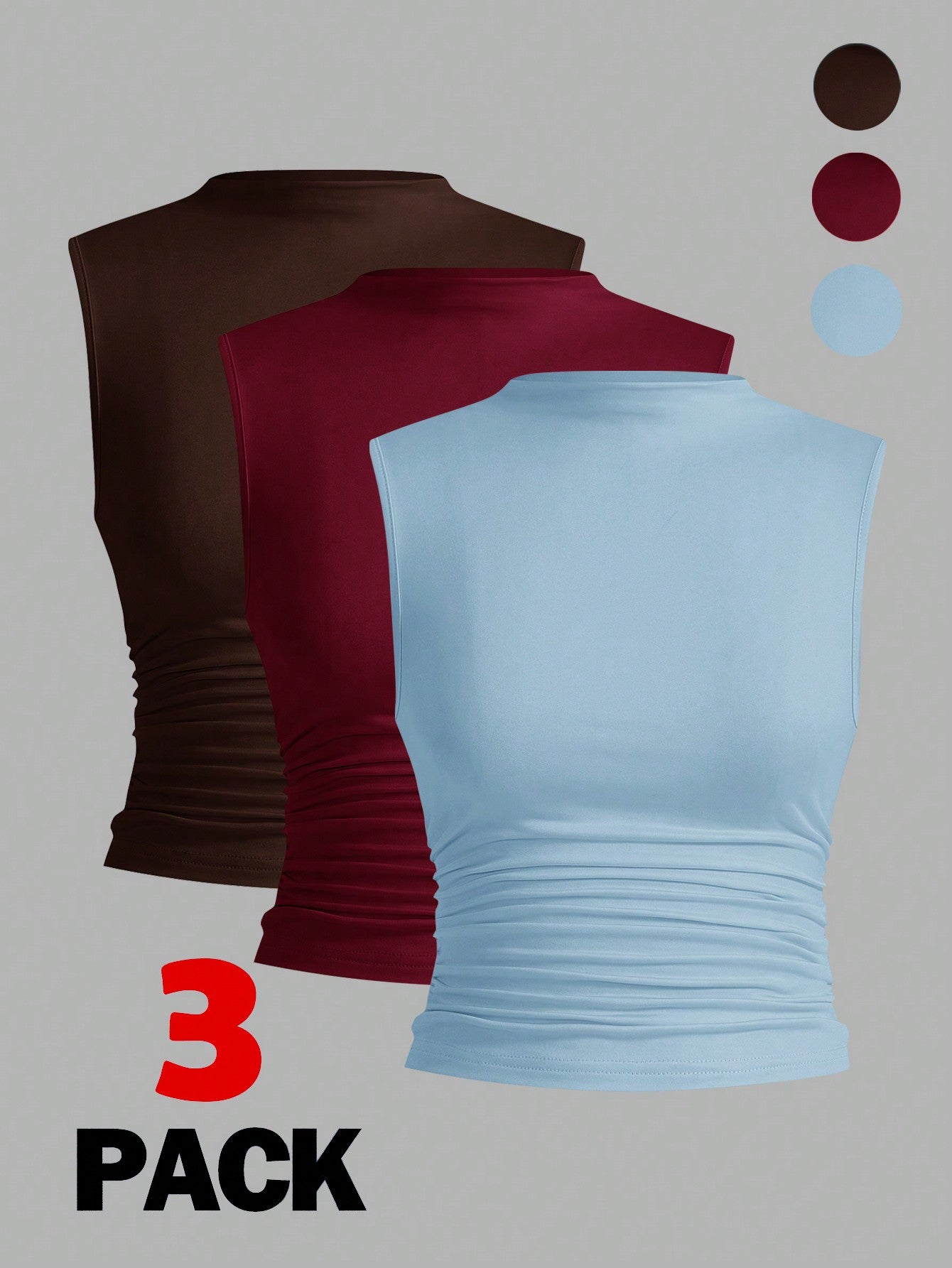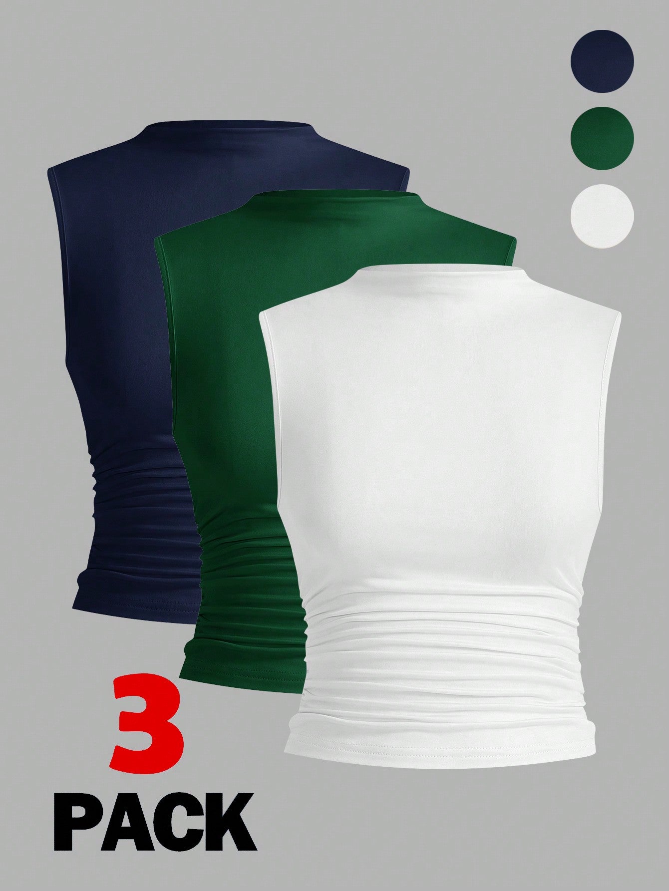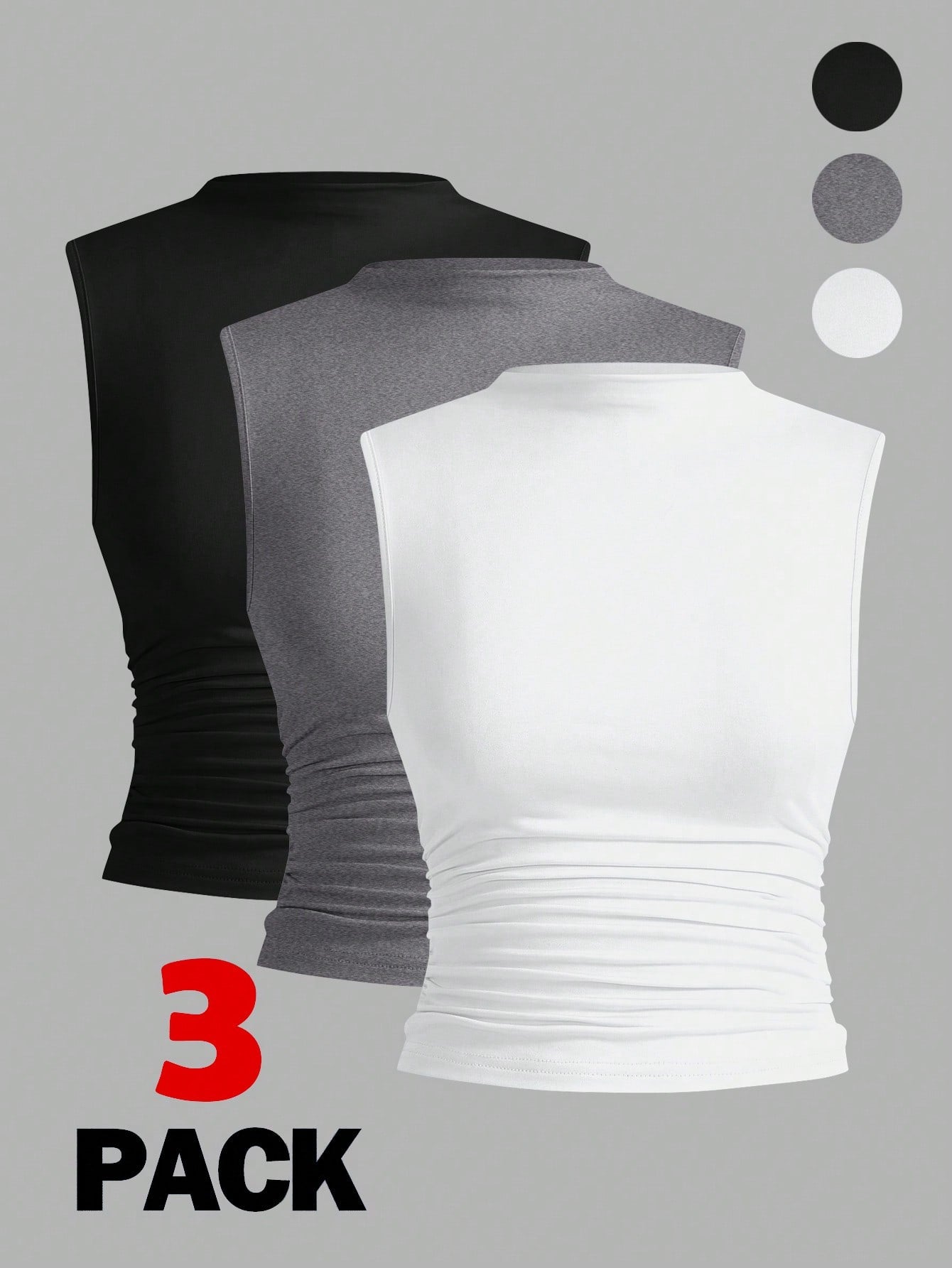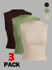 Siren Gaze 3pcs Pleated Sleeveless Blouse Tops