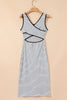 Stripe Crisscross Side Slits Slim Fit Sleeveless Midi Dress