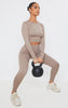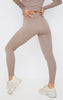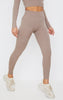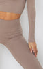 Elevate your workout wardrobe with these taupe seamless leggings. Engineered for both performance and style, the ribbed detailing offers subtle texture while ensuring a streamlined silhouette. Crafted from a supportive knit, these leggings move with you, providing comfort and confidence from the studio to the street. The taupe hue is a versatile neutral, integrating effortlessly into any existing ensemble. Team yours with a tailored blazer and sleek trainers for a post-gym coffee run, or pair with our high-waisted trousers for a more directional look.