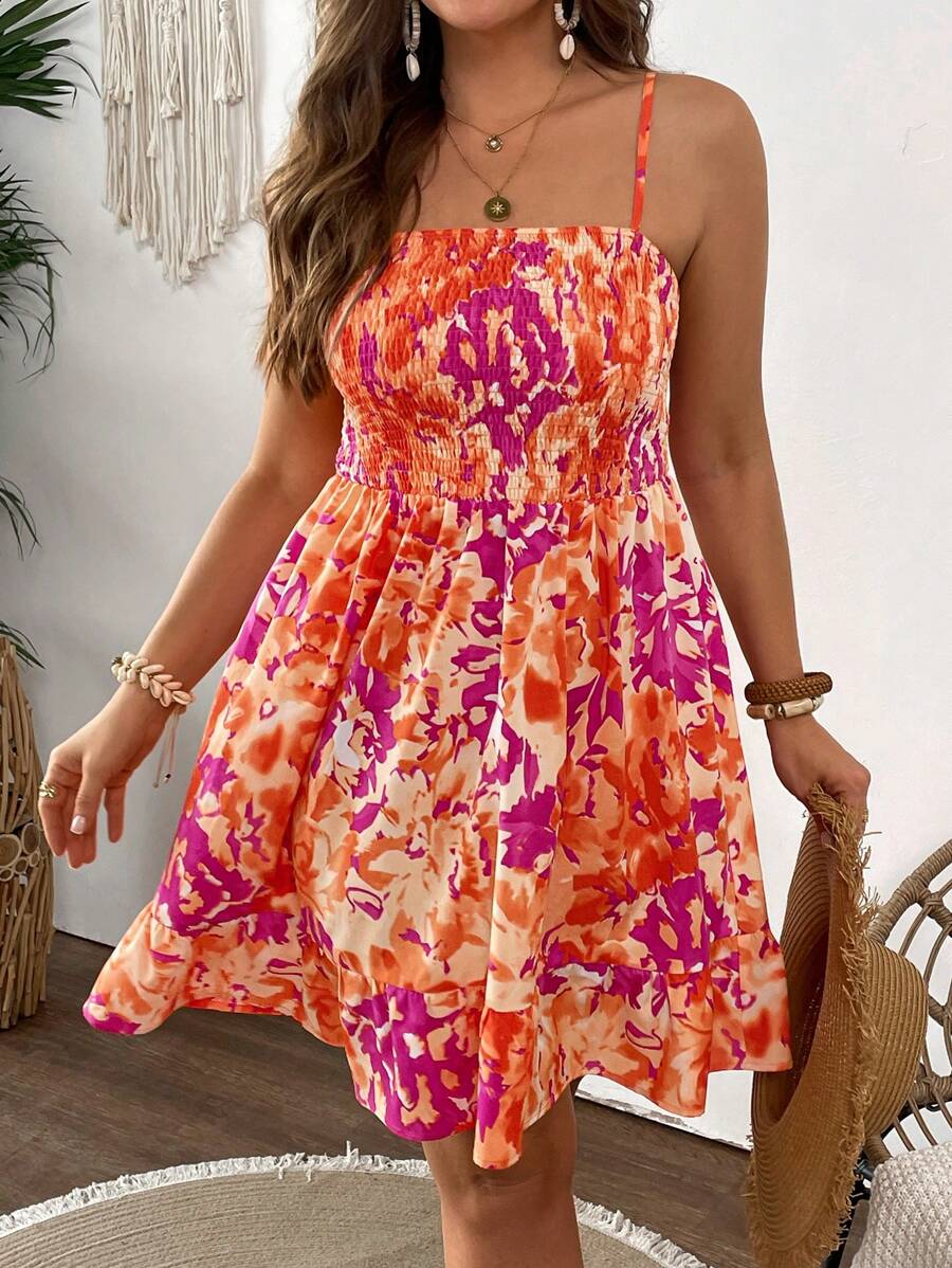 VCAY Plus Size Boho Floral Printed Cami Dress, For Summer