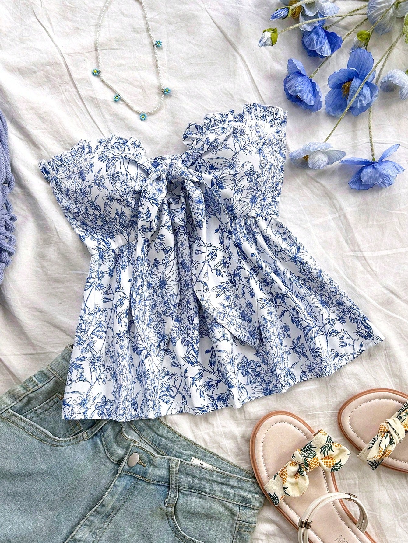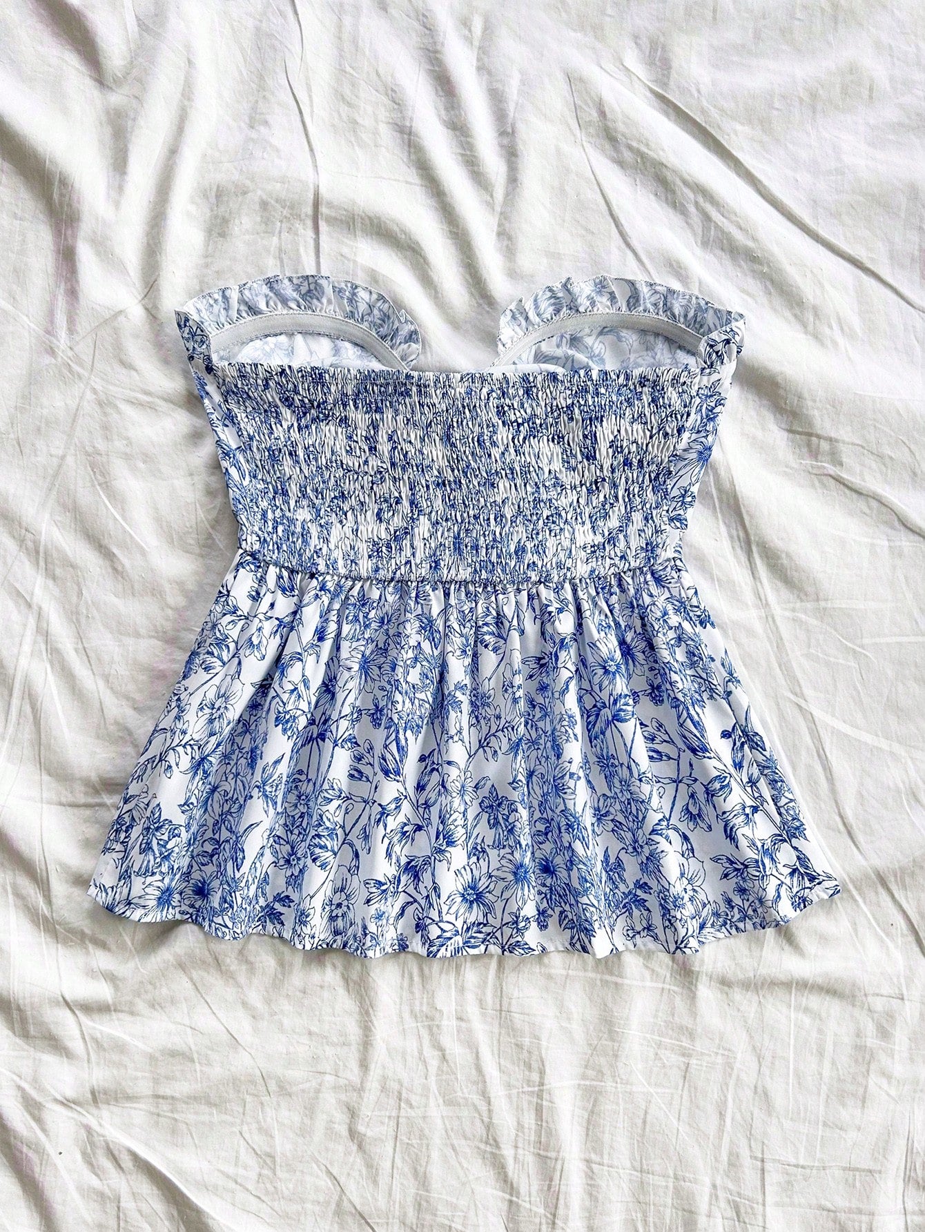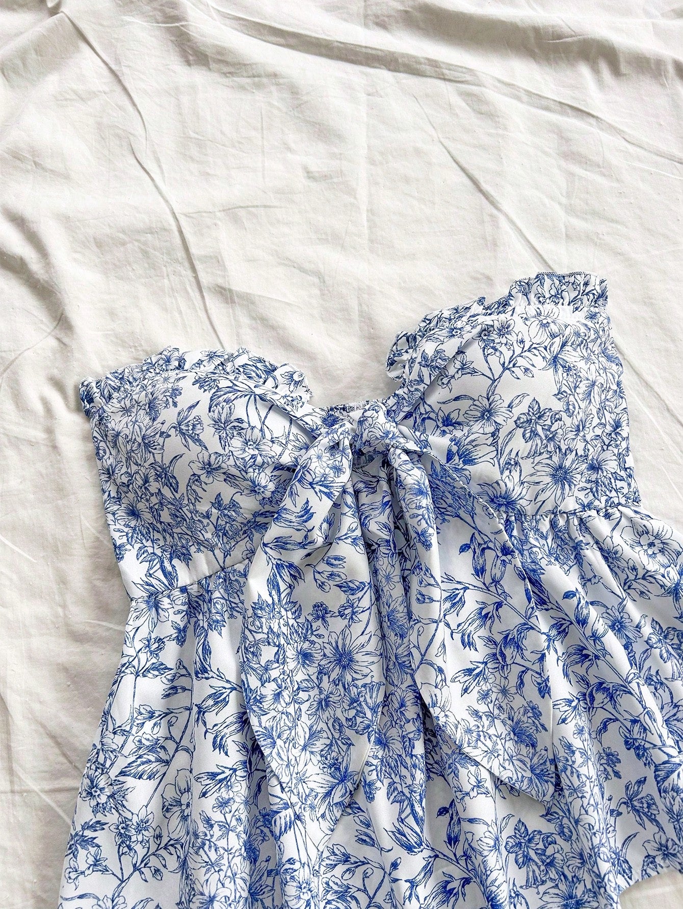 WYWH Vacation Casual Tie-Waist A-Line Ruffle Hem Bandeau Top